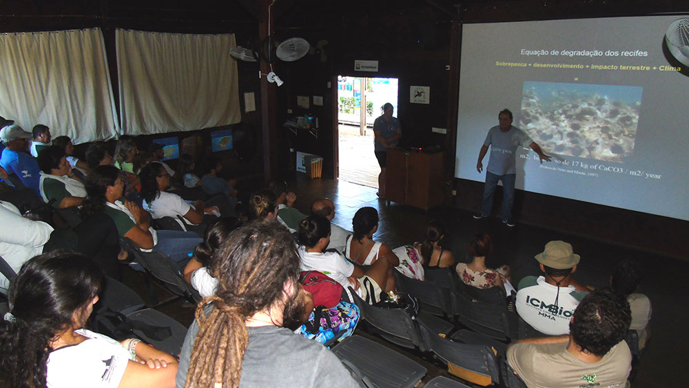 A afirmação é do doutor em Oceanografia Mauro Maida, da Universidade Federal de Pernambuco (UFPE). O professor abriu a programação da Quinta da Boa Prosa do ICMBio no dia 21 de julho, com uma palestra no Centro de Visitantes do TAMAR em Fernando de Noronha sobre “Unidades de Conservação e Produção Pesqueira”, com dados alarmantes sobre os danos da pesca predatória aos oceanos e os benefícios das áreas protegidas para a pesca.