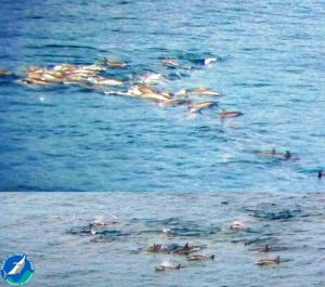 A pesquisadora Rita de Carli registrou o momento da aglomeração de golfinhos, na segunda-feira (22), na Baía dos Golfinhos.