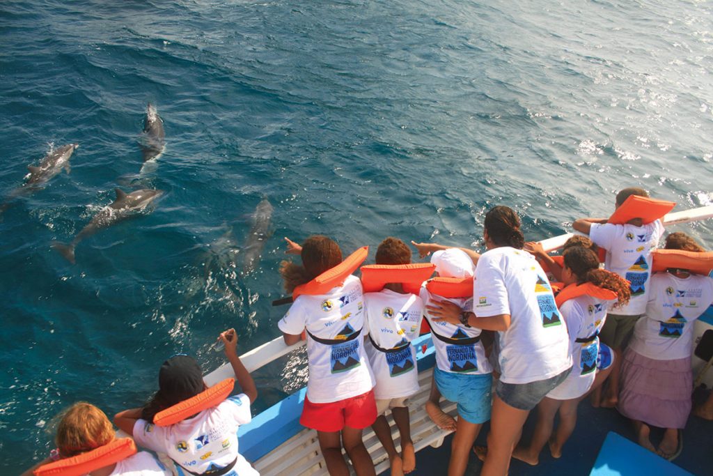 Nosso objetivo principal é sensibilizar ilhéus e visitantes quanto à necessidade de se preservar os golfinhos e o planeta. Foram realizados atendimentos a mais de 500 mil visitantes. Para os estudantes de Noronha, foram realizadas mais de mil oficinas teóricas e práticas de Educação Ambiental, atendendo a mais de 15 mil alunos e 200 professores.