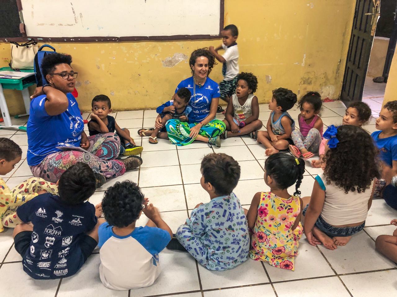 As crianças do Centro Integrado de Educação Infantil (CIEI) Bem-me-quer, em Fernando de Noronha, ainda estão aprendendo a ler e escrever, mas já são capazes de reconhecer, e até desenhar, figuras de animais da ilha. Conhecer golfinhos, tartarugas marinhas, tubarões e aves, entre outros bichos, é uma das ferramentas de educação ambiental utilizadas pelo Projeto Golfinho Rotador no CIEI, que atende a faixa etária dos 4 meses aos 5 anos.