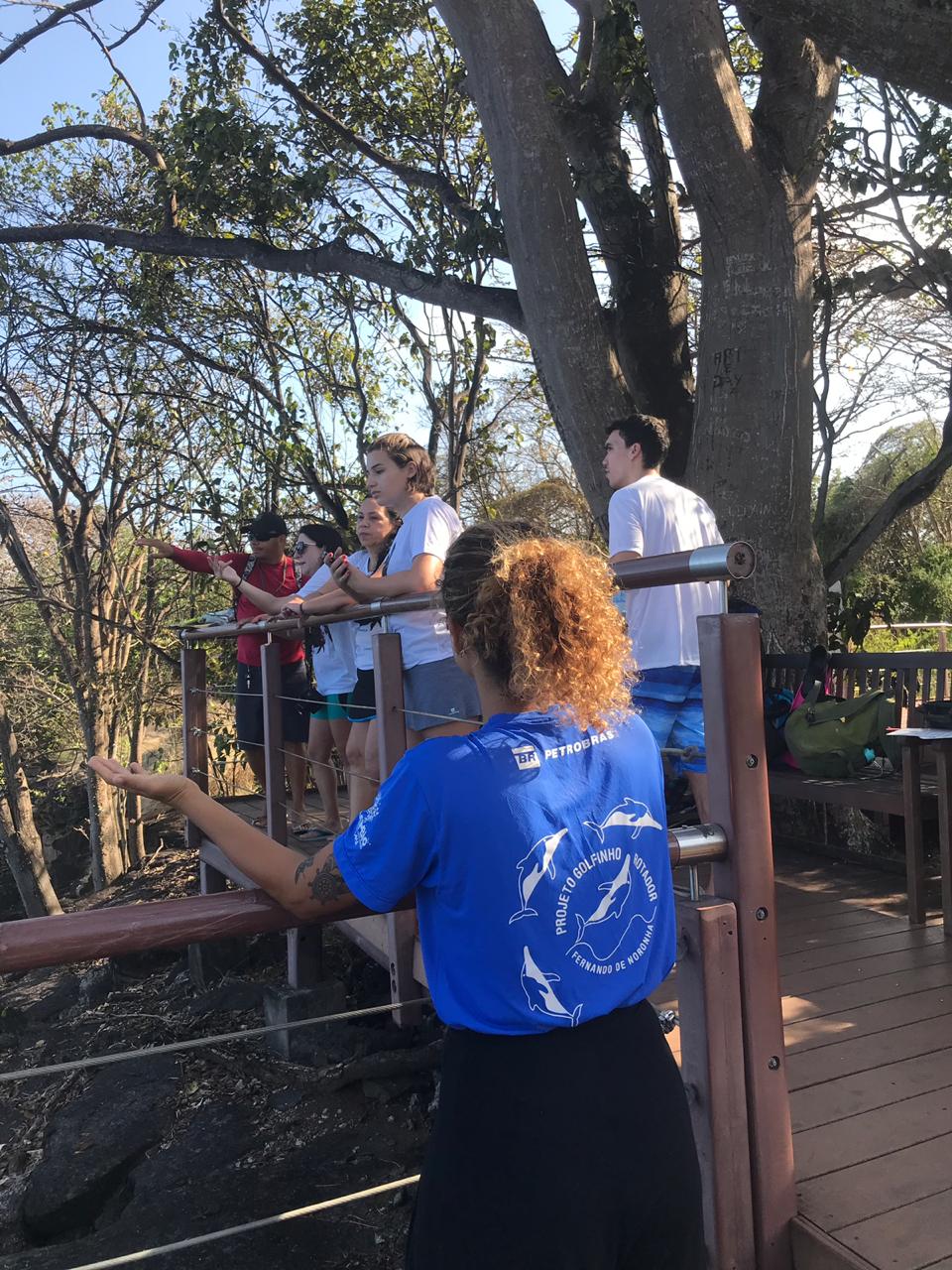 Nos dois pontos fixos de observação de golfinhos na ilha são disponibilizados binóculos aos visitantes, há distribuição de folders e, como os pesquisadores do Projeto Golfinho Rotador sempre estão em dupla, há possibilidade de um deles conversar com os visitantes sobre a biologia e comportamento da espécie.