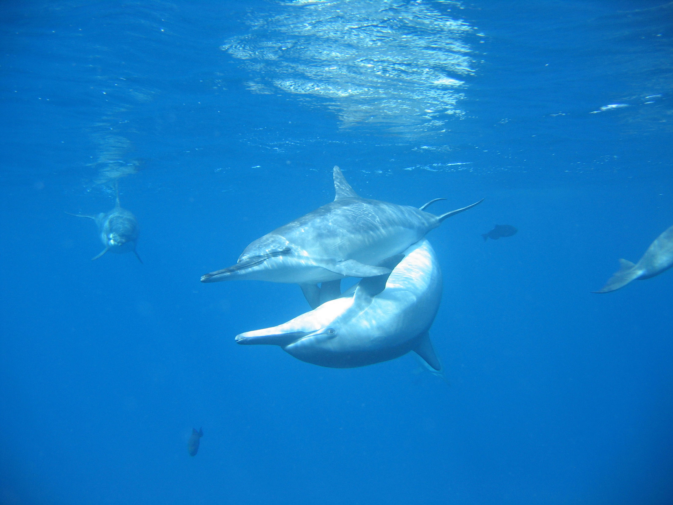 Assim, março e abril e agosto e setembro são ótimos para Fernando de Noronha ser visitada por quem quer observar filhotes de golfinhos, pois é a época principal dos comportamentos de cuidado parental, quando os adultos protegem e amamentam seus filhotes.