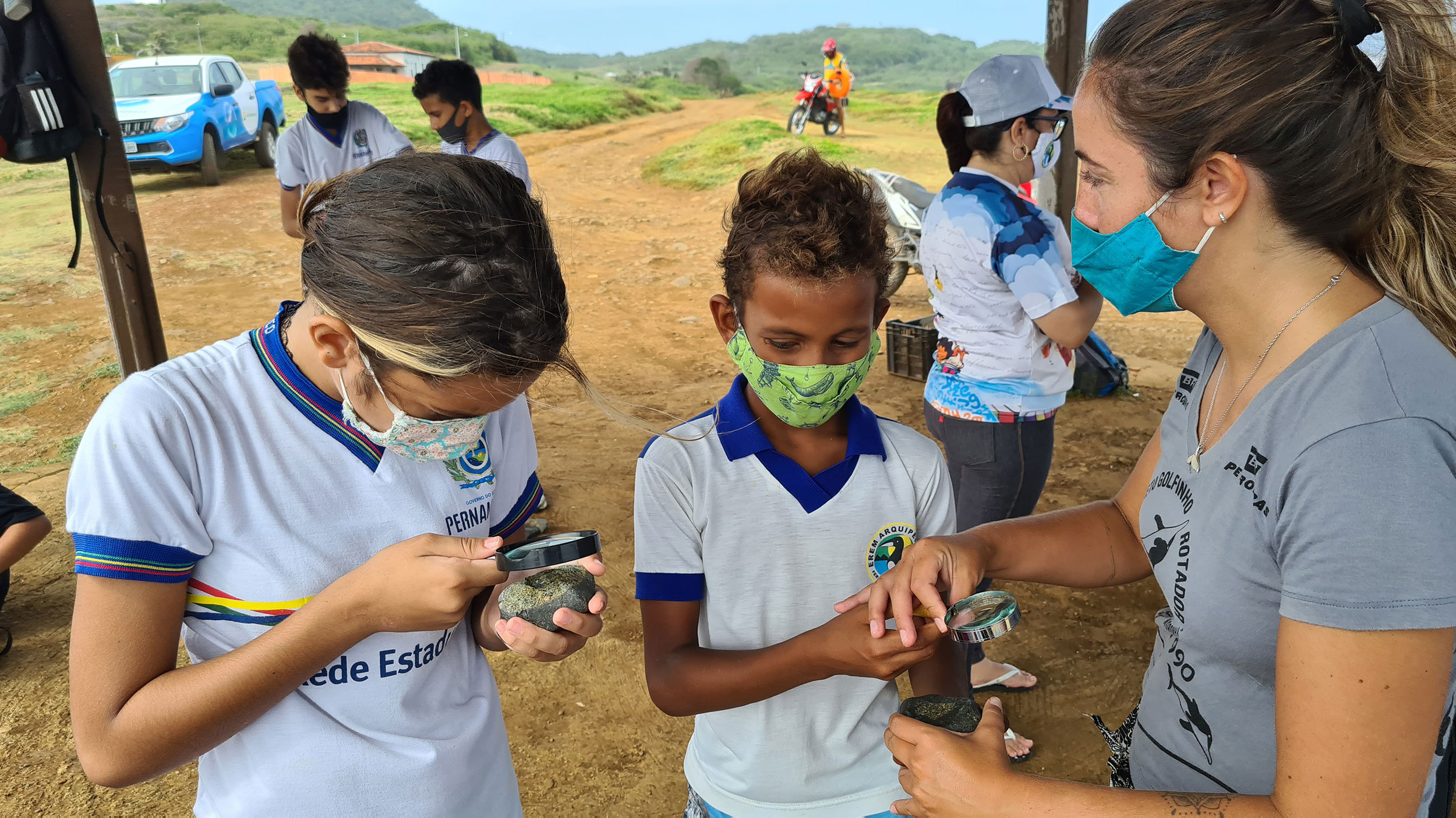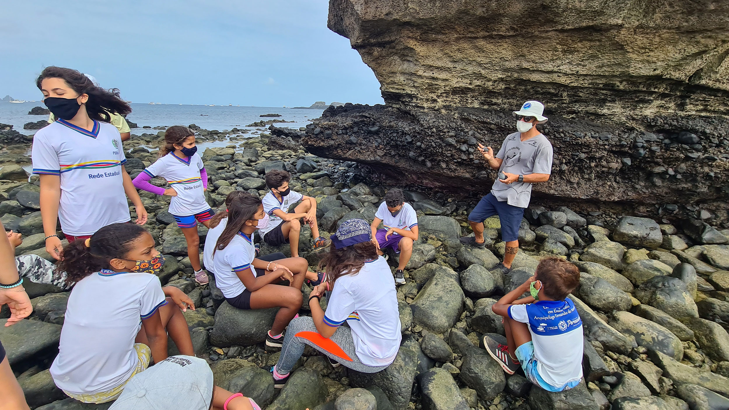Atendendo a uma demanda do professor Ronald dos Anjos Silva, pesquisadores do PGR – que é patrocinado pela Petrobras – auxiliaram o docente numa atividade externa com seus alunos, para falar sobre a geologia da Ilha. O objetivo era explicar aos estudantes sobre a origem de Fernando de Noronha, sobretudo sua formação vulcânica. “O apoio do PGR foi fundamental nessa nossa atividade, para explicar às crianças sobre o surgimento do nosso Arquipélago e suas origens vulcânicas”, disse Ronald. “É muito importante repassar esse tipo de conhecimento aos nossos alunos. Quero agradecer ao pessoal do PGR por sempre estar disposto a colaborar com a formação dos nossos estudantes”.