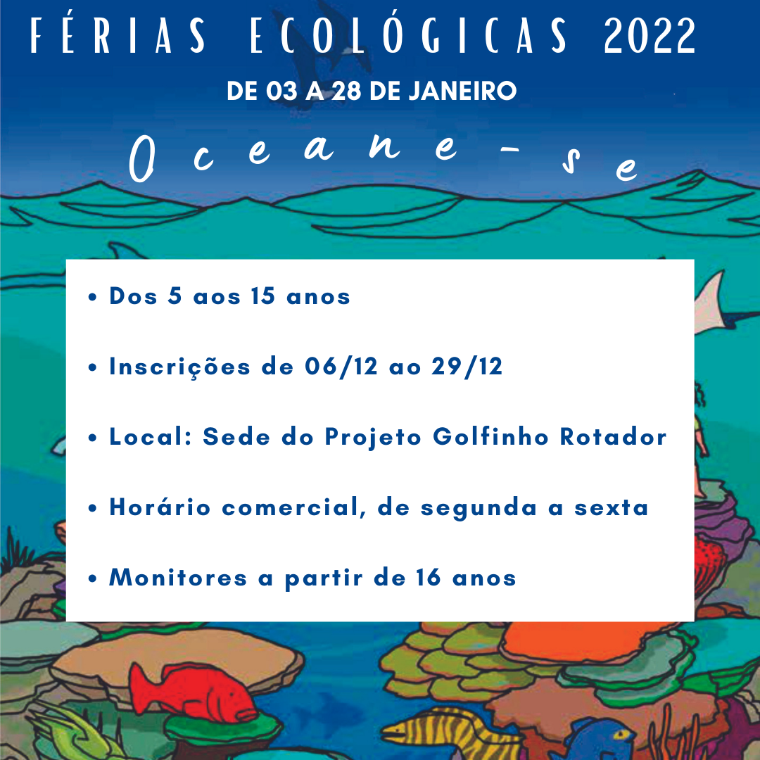 Nestas Férias Ecológicas serão realizadas diversas atividades educativas e recreativas específicas para cada faixa etária na praia da Baía de Santo Antônio. Estas atividades compreenderão vivência de cultura e experiências oceânicas, arte e conhecimento teórico. As Férias acontecerão durante o mês de julho, entre 9h e 12h, de segunda a sábado.