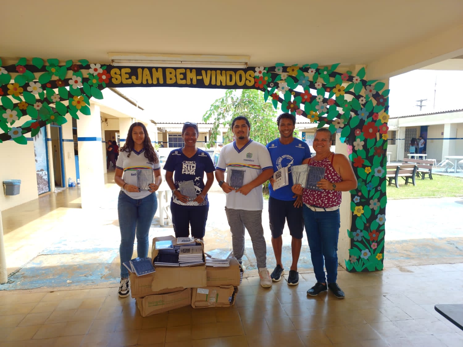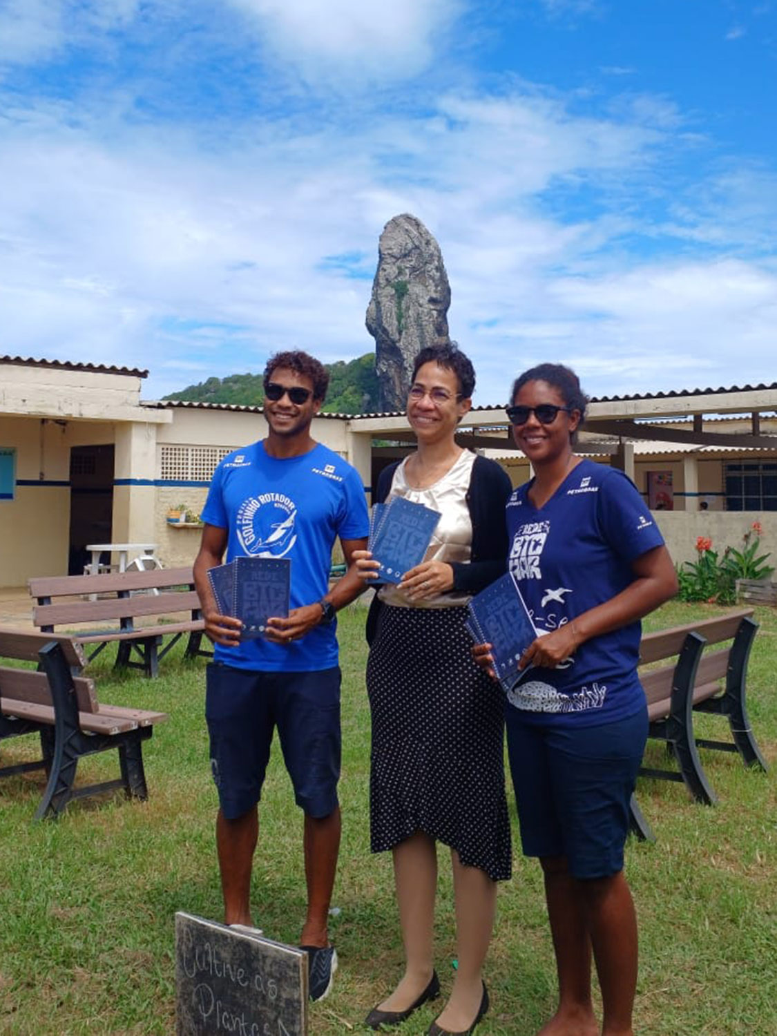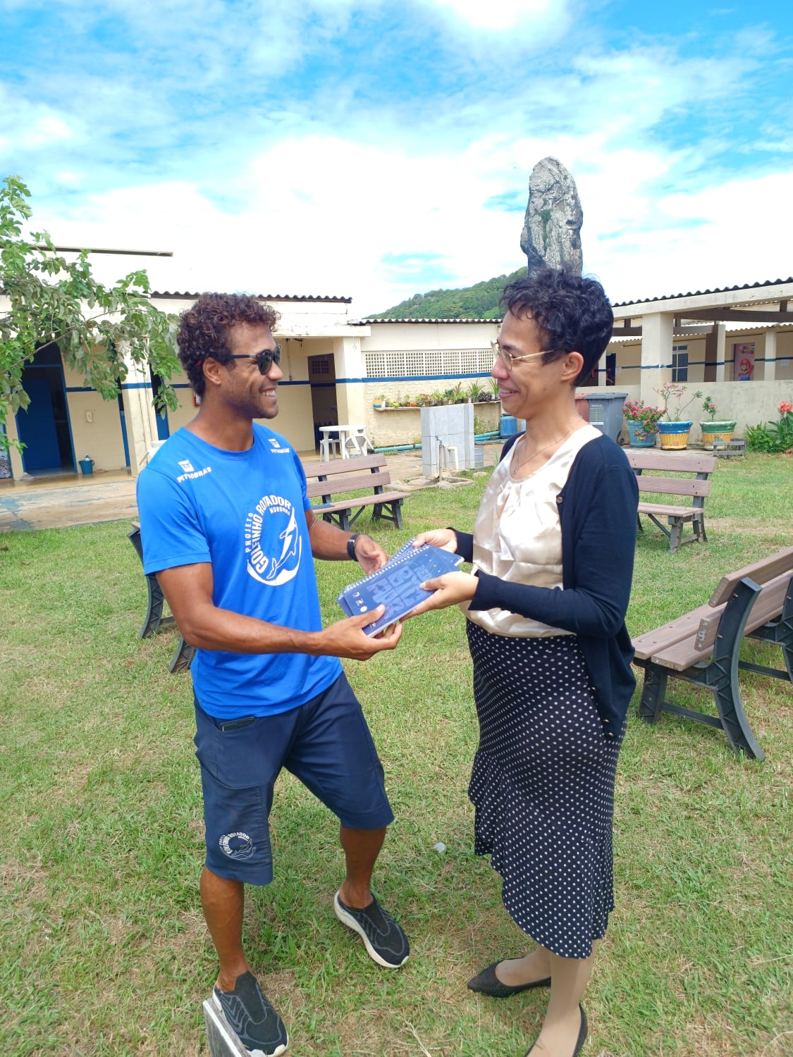 Março foi o mês de retomada das atividades do Projeto Golfinho Rotador (PGR) na Escola Arquipélago, em Fernando de Noronha. Patrocinado pela Petrobras, o PGR retomou sua programação escolar no dia 17, com a atuação do coordenador Ademir de Freitas e da pesquisadora Amanda Silva, que foram até a escola para entregar 525 agendas produzidas pela Rede Biomar, distribuídas aos alunos e profissionais da educação.