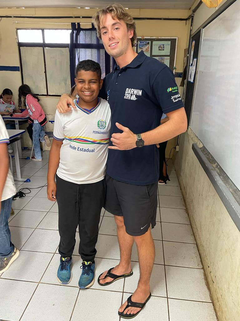 Enquanto ancorados no Porto de Noronha, um “darwin leader” e seu câmera acompanharam por três dias as atividades do Projeto Golfinho Rotador de pesquisa e monitoramento do comportamento dos golfinhos nas duas áreas de proteção ambiental, uma com total restrição para atividade turística náutica, e outra com múltiplas embarcações na mesma área de ocupação dos golfinhos, além de participarem das ações desenvolvidas dentro do sistema de educação escolar no arquipélago. “É muito especial desenvolver essa missão em um local incrível como é Fernando de Noronha, mesmo sendo um tempo curto e de muito trabalho, o ambiente torna tudo bem prazeroso”, disse Tom Schidlbauer, de 23 anos, biólogo austríaco e “darwin leader” designado a acompanhar nossas ações.