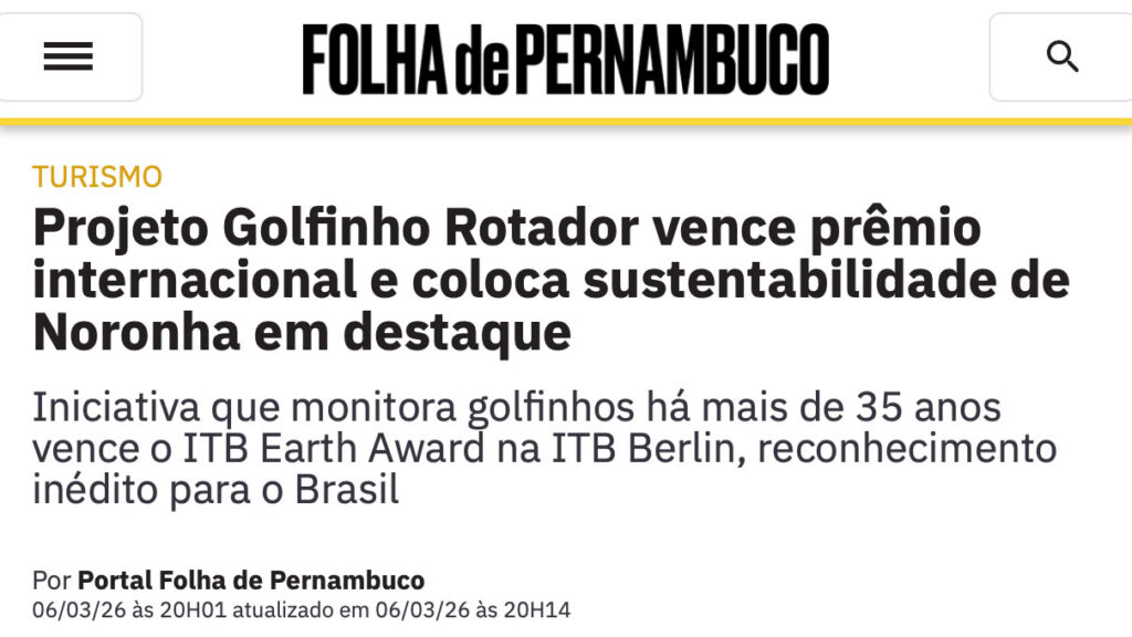Projeto Golfinho Rotador em Fernando de Noronha é vencedor de Prêmio internacional
