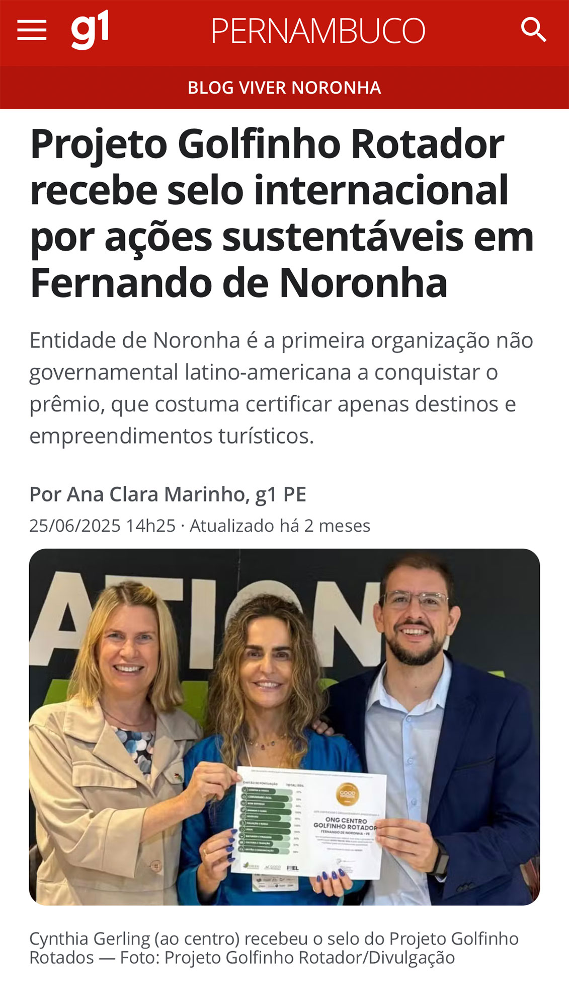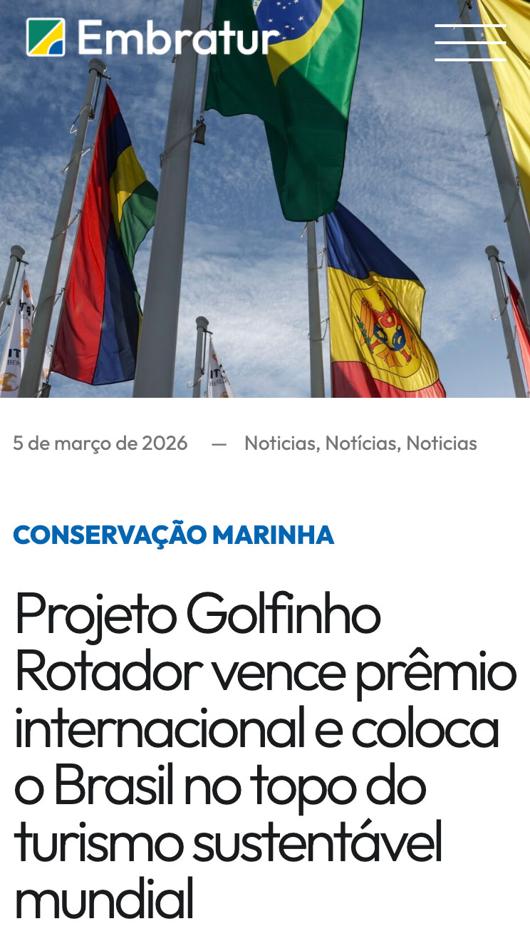 O Projeto Golfinho Rotador é finalista TOP 3do prêmio Green Destinations.
