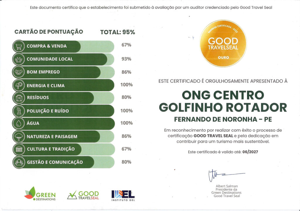 Isso mostrou que estamos em sintonia com nossa missão: desenvolver atividades de pesquisa, educação ambiental, envolvimento comunitário e sustentabilidade para a conservação dos golfinhos, de Fernando de Noronha e da biodiversidade marinha, e com nossa visão: tornar-se referência mundial em conservação ambiental e sustentabilidade em ecossistemas insulares.